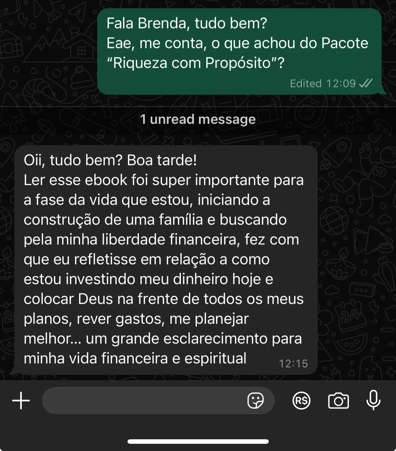 Se você está pronto para mudar de vida, alcançar novos patamares e aprender como aplicar ensinamentos bíblicos ao mundo das finanças, venha comigo nessa jornada. Deus deseja que você prospere, e estou aqui para te mostrar o caminho.